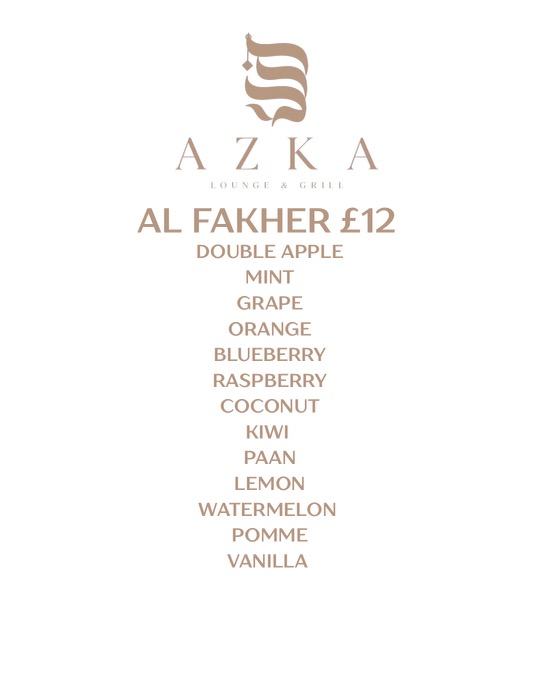 Azka Lounge is known for its incredible Shisha experience. Whether you’re here to relax or celebrate, our Shisha menu will take your lounging experience to the next level. Enjoy the rich, smooth flavours of our Savacco Premium Range or indulge in the refreshing Al Fakher Standard Range.